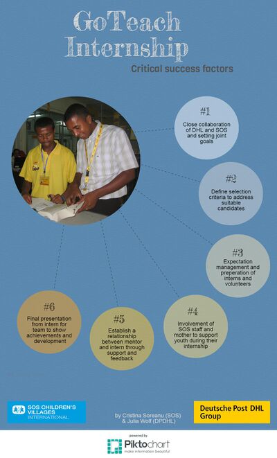 It is important that there are GoTeach program contacts at both DHL and the SOS Children’s Villages, and that they are aware of the importance of their work for the success of the activities. Furthermore, no distinction should be made between interns from SOS Children’s Villages and any other intern. Everyone must be treated equally irrespective of their background.