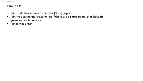 The suggested maximum number of participants is 6 to 8 as the current timing and interaction has been defined for this number of participants. A limited number of participants enables for individual presentations and feedback sessions. To support the students the suggestion is to have one volunteer for each 2 participants. Volunteers can help with the preparation for the presentations, answer questions and support the students on an individual level if needed.
