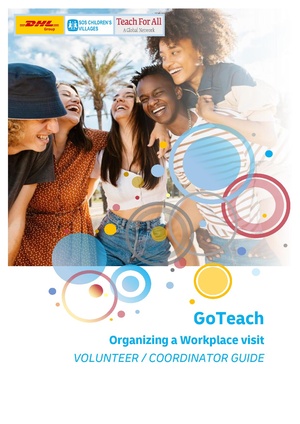 Further SupportTranslations in French and Spanish as well as editable versions of the download materials can be found in the GoTeach library on our DHL Group SharePoint (https://dpdhl.sharepoint.com/sites/Sustain-Hub/SitePages/go-programs.aspx). In case you have trouble accessing the SharePoint or other questions, please contact us at goteachwiki@dhl.com.